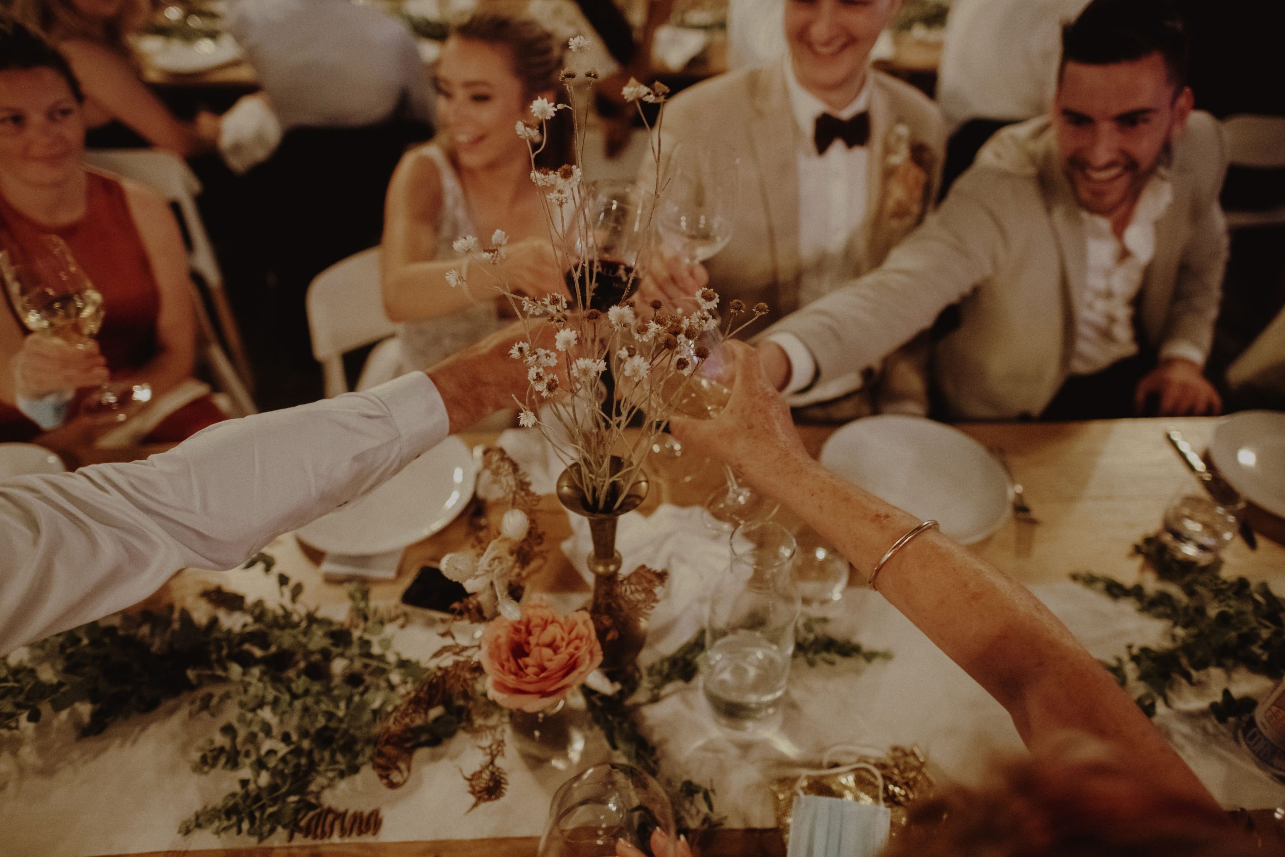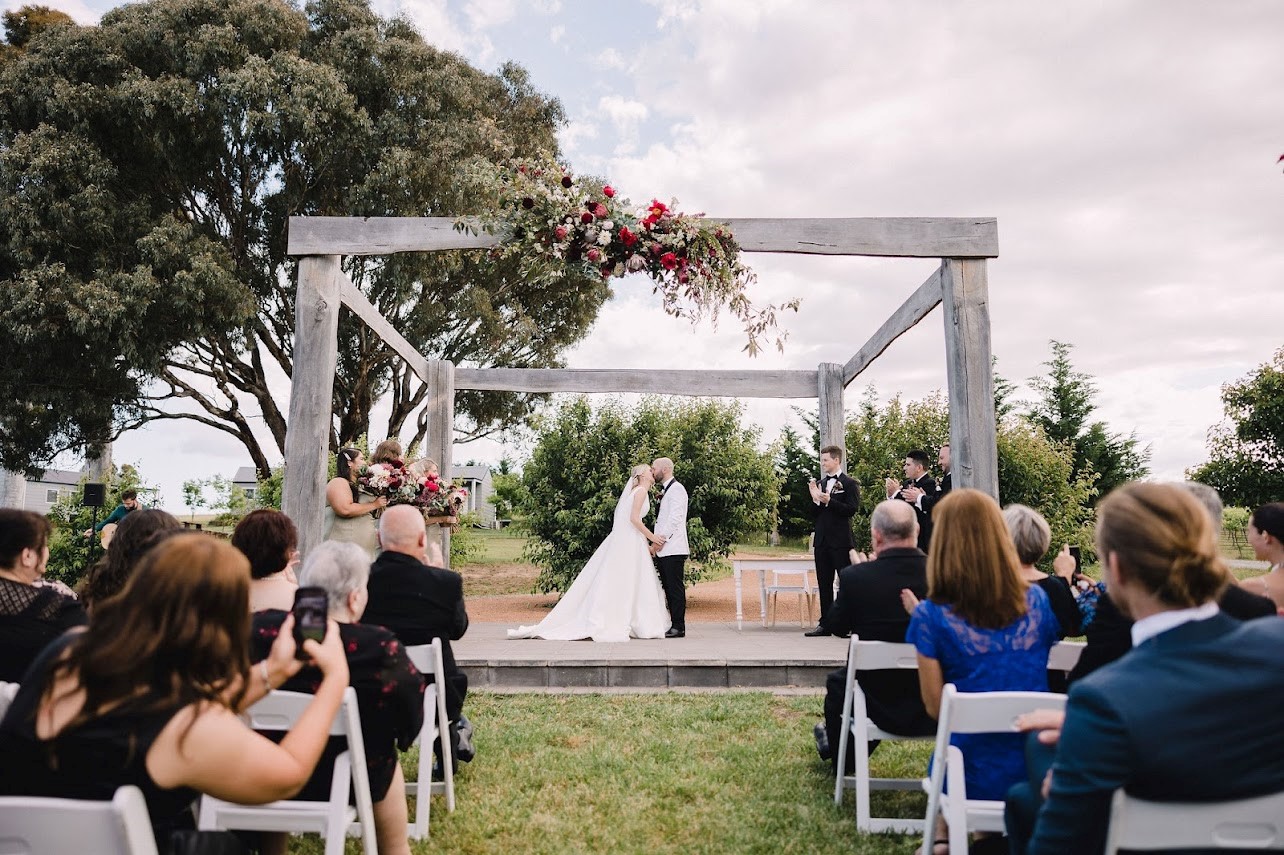 - Timber tables, designer chairs, ceremony table and chairs, wine barrels, included in venue hire fee