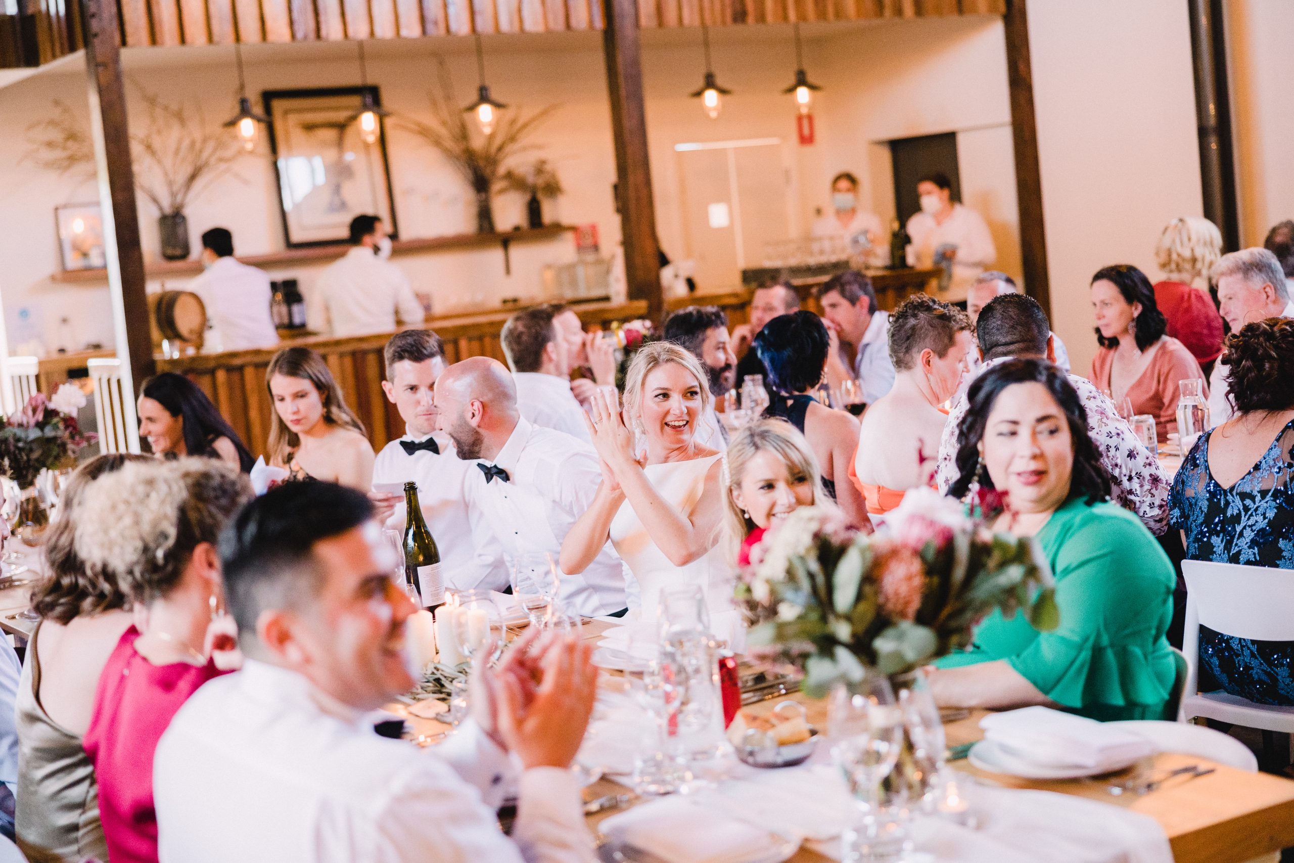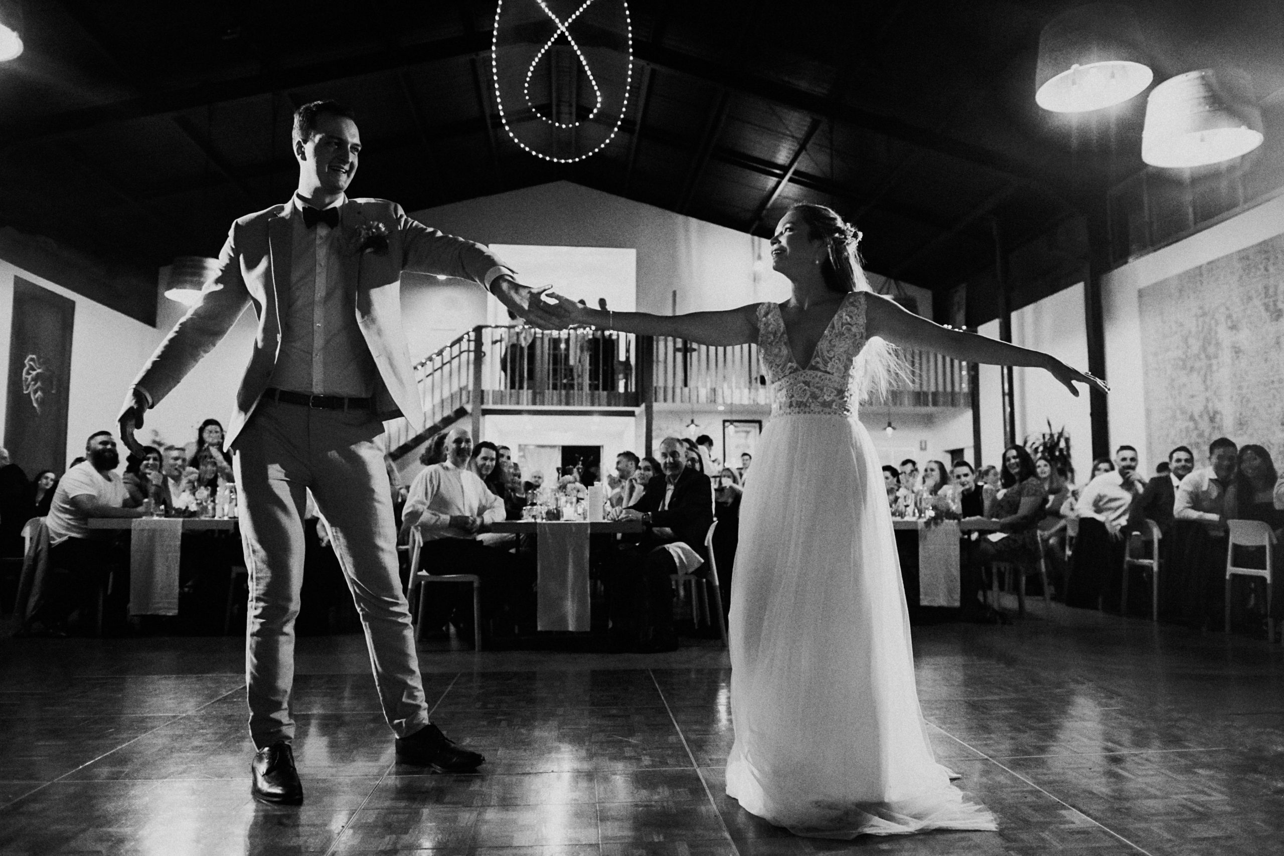 Beautiful handmade barn doors and the most welcoming timber bar in the region, offer unforgettable entrance experiences and social gathering points – perfect for conversation starters and photo opportunities. The upstairs Gallery offers private dining or quiet reflection space overlooking the forecourt and vineyard, right alongside the picturesque outdoor deck and internal timber balcony for those once in a lifetime performances, heroic speeches and unique photo opportunities.